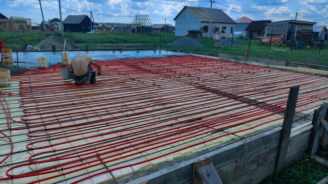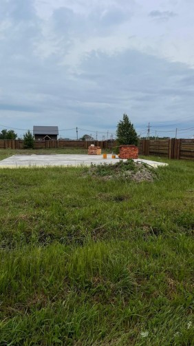 В поселке функционирует школьный автобус. Участок можно приобрести без подряда. На нем уже залит ленточный фундамент 9х11 метров, сделала разводка системы теплых полов, труб по мокрым точкам и сливы. Можно построить и каменный и каркасный дом. Цена участка с фундаментом 1.800.000 рублей