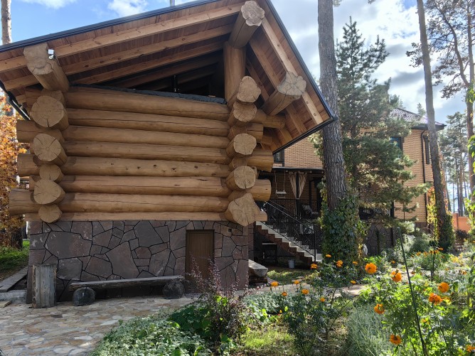 11. баня из кедровых брёвен диаметром 40-50 см. В бане есть душ и просторная зона отдыха с выходом на террасу.