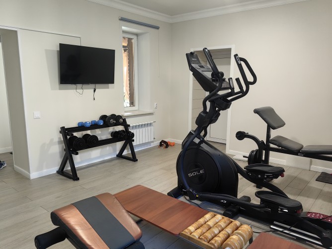 7. тренажерный зал укомплектован (продаётся вместе с тренажёрами и телевизором);