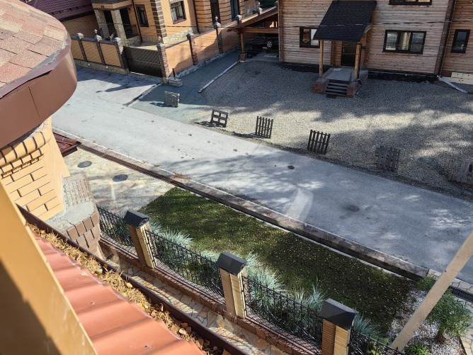 Дом расположен на закрытой и асфальтированной улице. Выезд с улицы оборудован откатными воротами с одной стороны и шлагбаумом с другой.