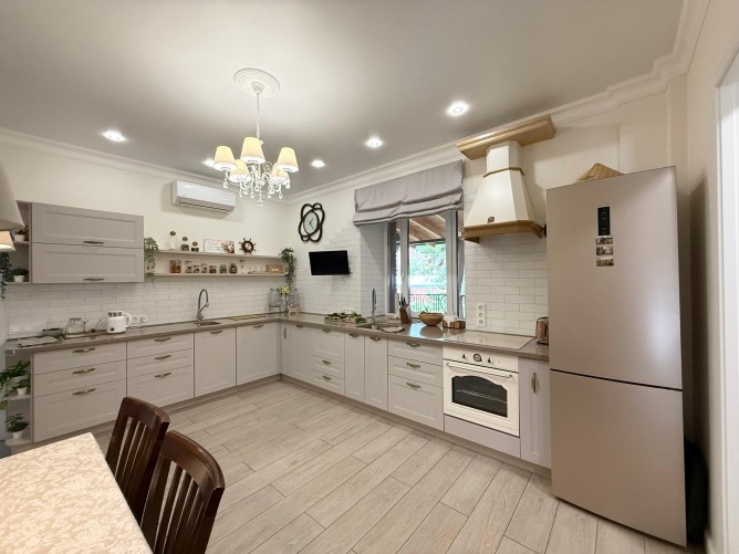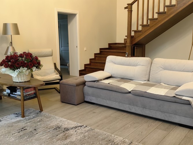 Общая площадь дома 670 кв.м (жилая площадь + подсобное помещение + гараж + баня)