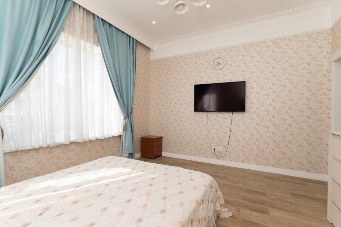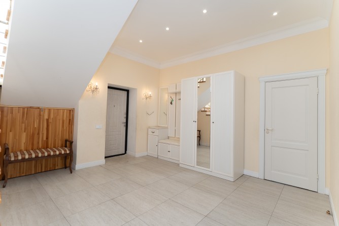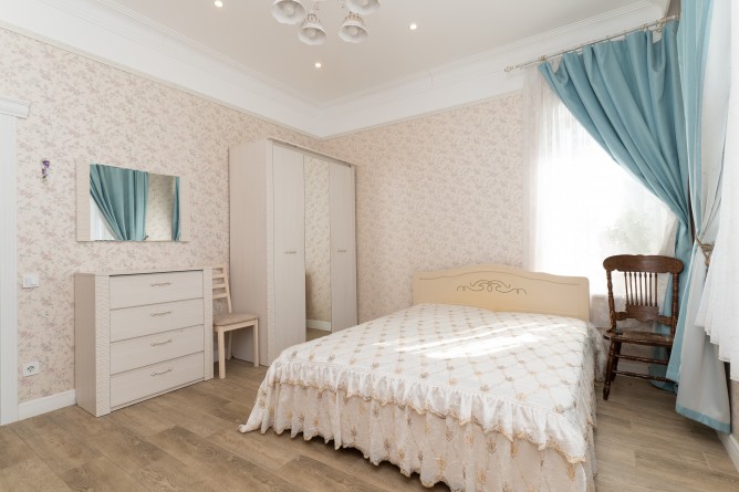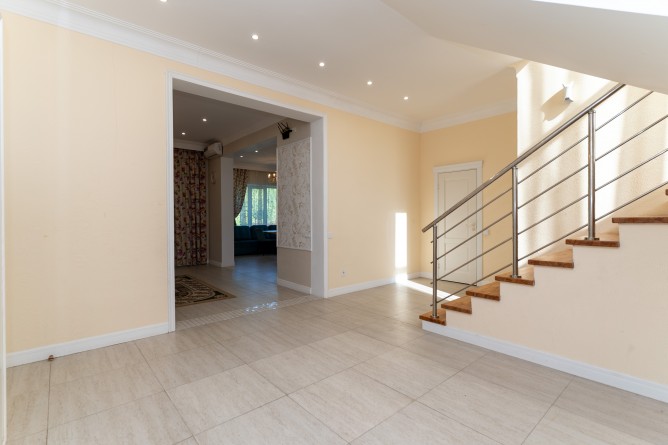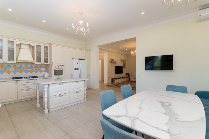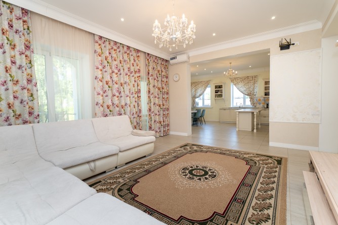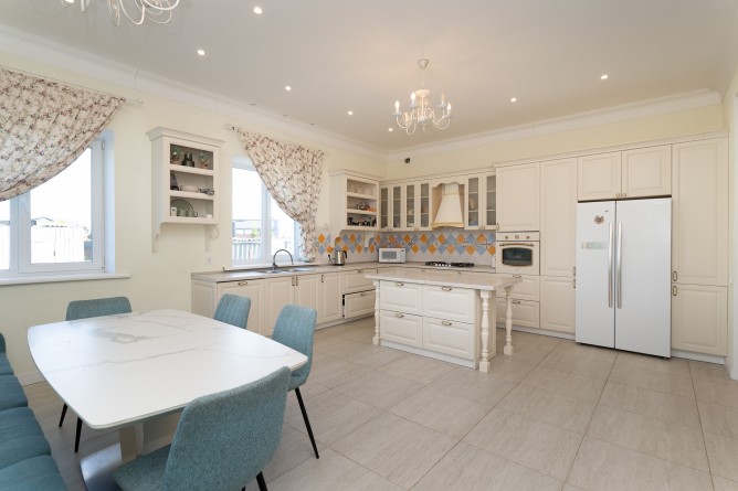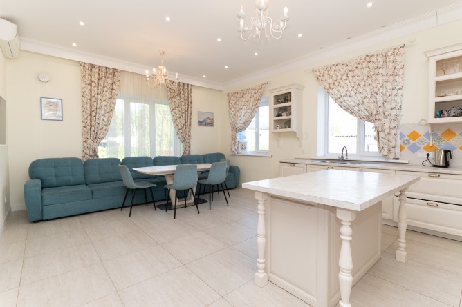 В доме остается встроенная мебель с бытовой техникой и текстилем.