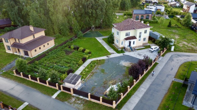 Участок состоит из 2-ух участков с разными кадастровыми номерами. На всех участках отдельно заведены газ, электричество, вода и оптоволокно. Возможно строительство отдельного гостевого дома, бани (под баню выведены все коммуникации). Либо продать. На участке: баскетбольная площадка с резиновым спортивным покрытием, газоны, дорожки, большая парковочная зона, 2 въезда с разных улиц. Все ворота с электроприводом.