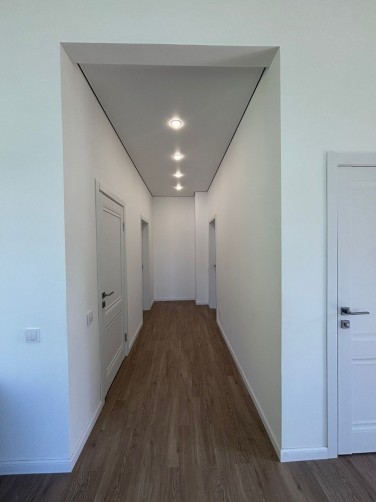 2 сан узла. 2 спальни, в одной место под гардероб, во второй встроенный шкаф с зеркальными дверями. везде стоят розетки, светильники.