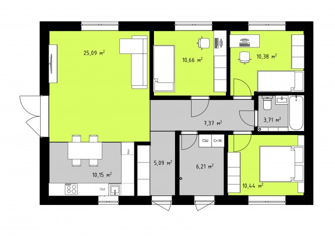 Дом 89,1 м2. 3 спальни и кухня гостиная 35 кв.м