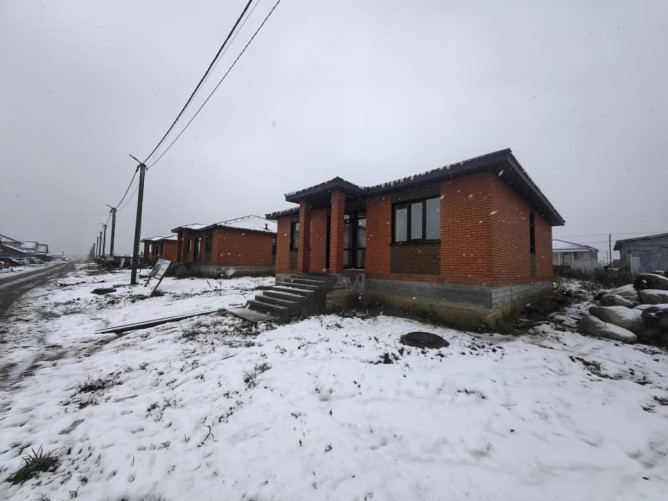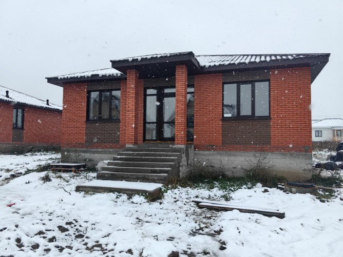 Одноэтажный дом 100м2 из 400мм Газобетона, облицовка кирпич на ленточном фундаменте. В дом заведены все необходимые для жизни коммуникации: Водоснабжение централизованное (скважина КП). Электричество разведено по дому. Отопление электрокотел с разводкой теплого пола по всему дому. Газ расположен по границе земельного участка.