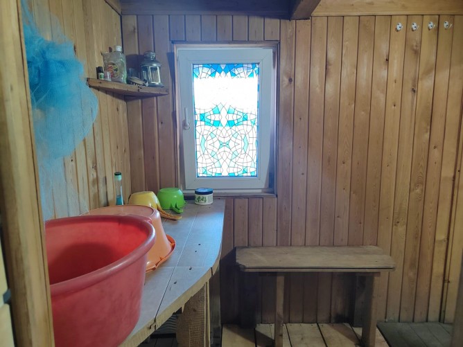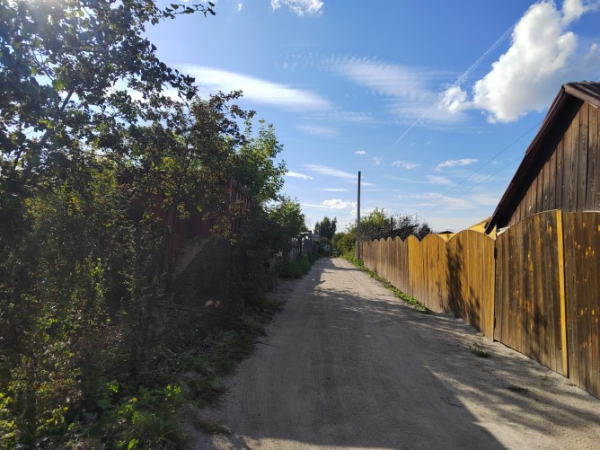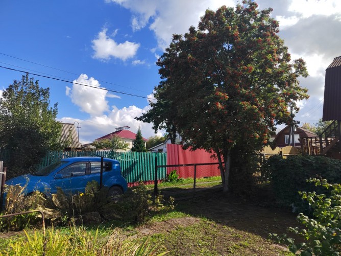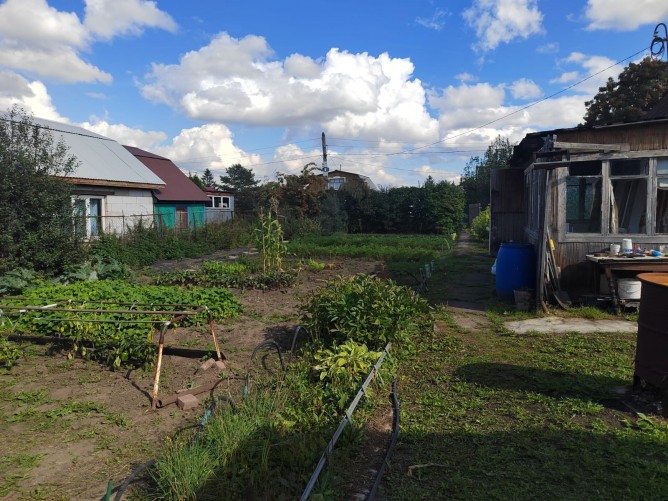 Участок РОВНЫЙ, правильной прямоугольной формы со всеми посадками: две яблони, вишня, облепиха, жимолость, смородина, крыжовник, малина и клубника. Из построек - ветхий домик (под капитальный ремонт или под снос), баня с навесом (комната отдыха, помывочное отделение, парная), новый хозблок, большая теплица - 3*8м. Так же предусмотрено место под парковку!