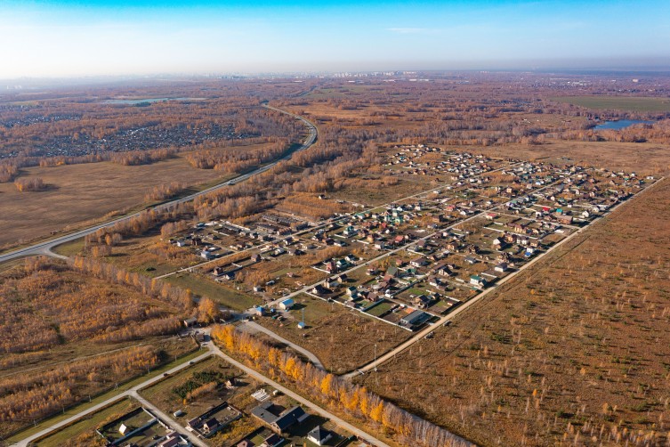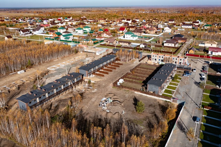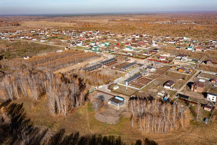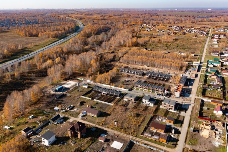 Ход строительства коттеджного поселка Клубника (Новосибирская область, Мошковский район, посёлок Октябрьский) с высоты птичьего полета.