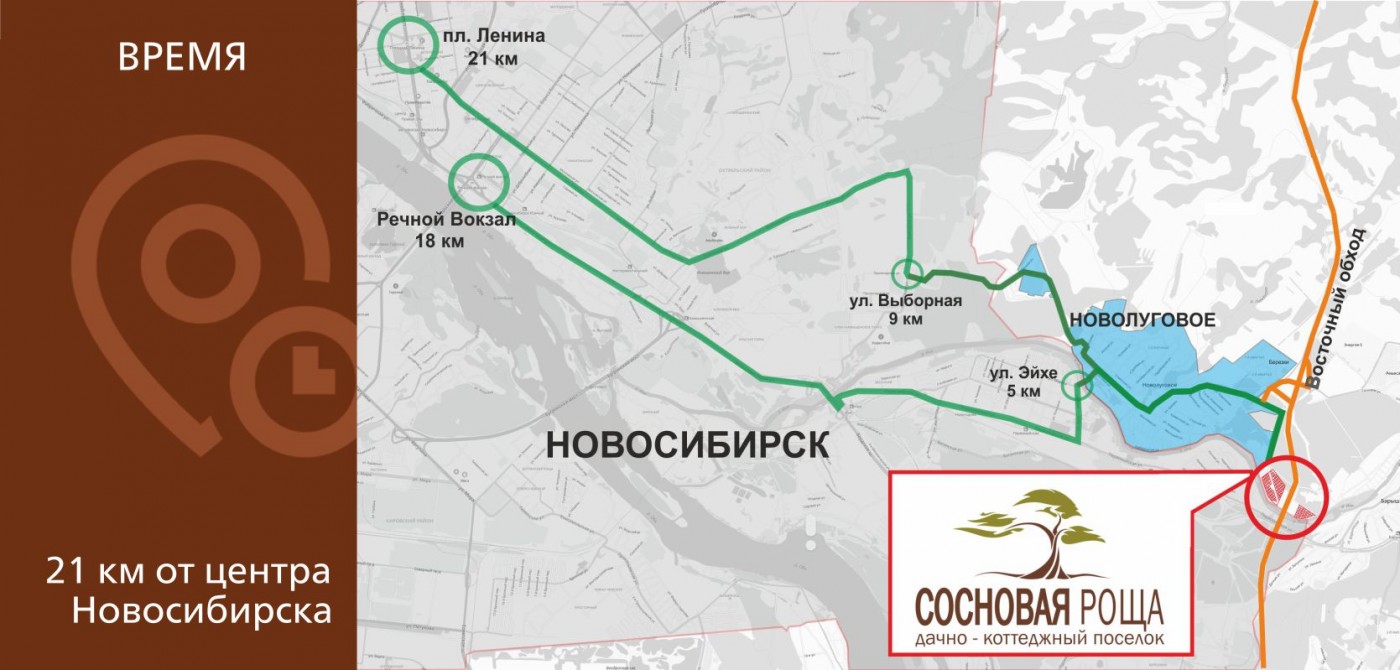 Доехать до посёлка можно через Первомайский район г. Новосибирска (въезд