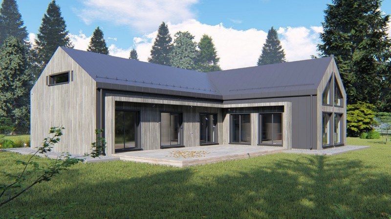 Представляем Вашему вниманию уникальный проект – угловой Барнхаус 131,2м2. Этот дом безусловно поразит своей архитектурой. Он сочетает в себе огромное пространство кухни-гостиной (больше 35м2), высокие 6-ти метровые потолки и множество удобных помещений для отдыха и хранения.