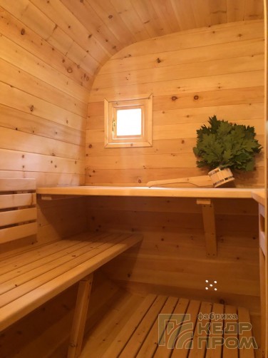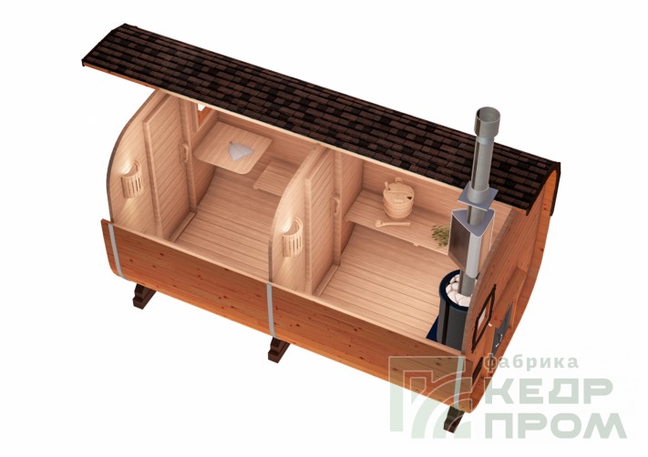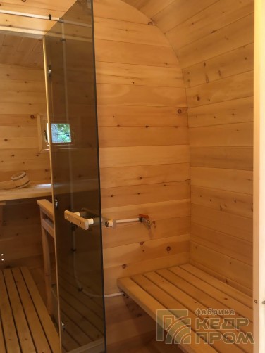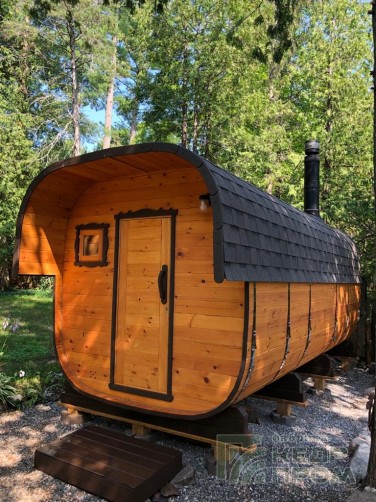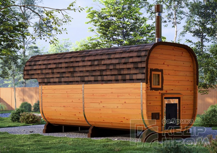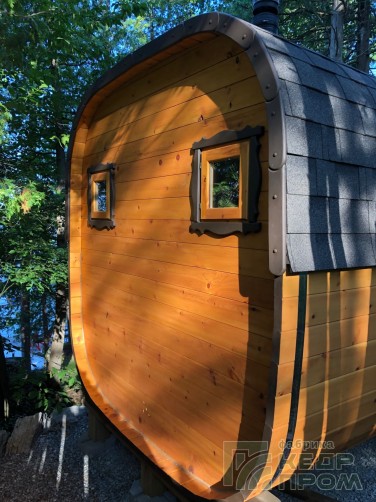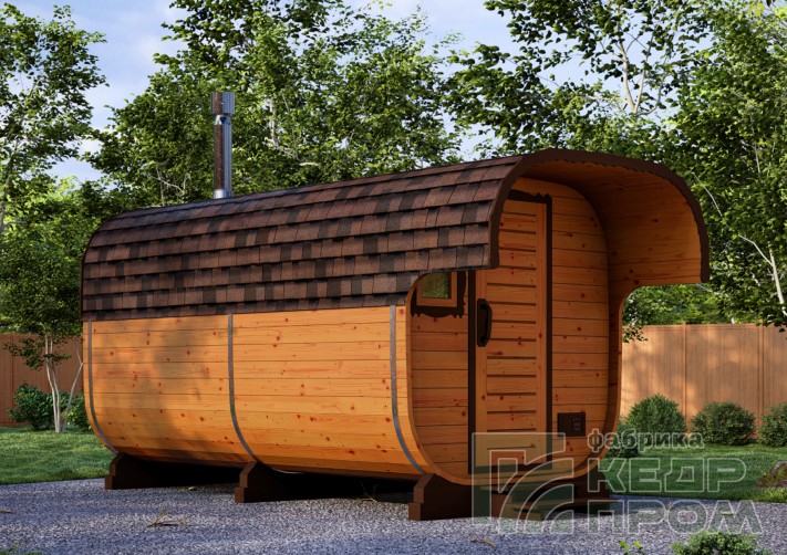Баня-бочка из кедра квадратная 5м с козырьком №289