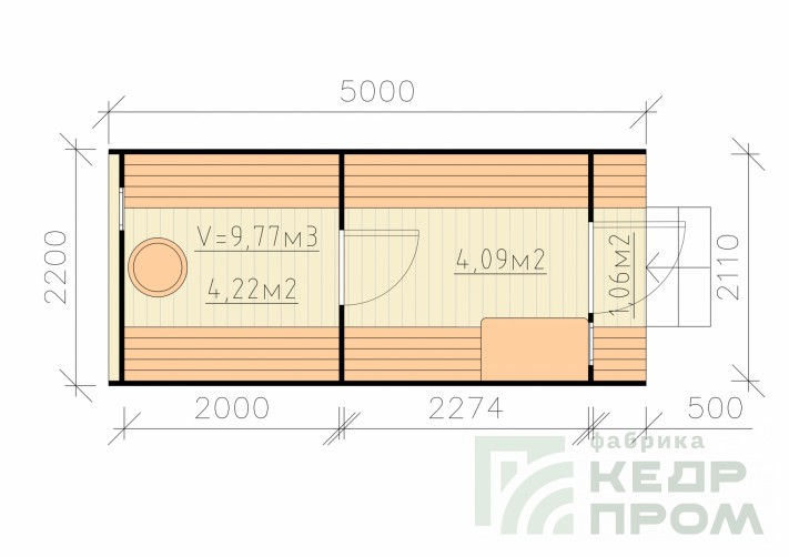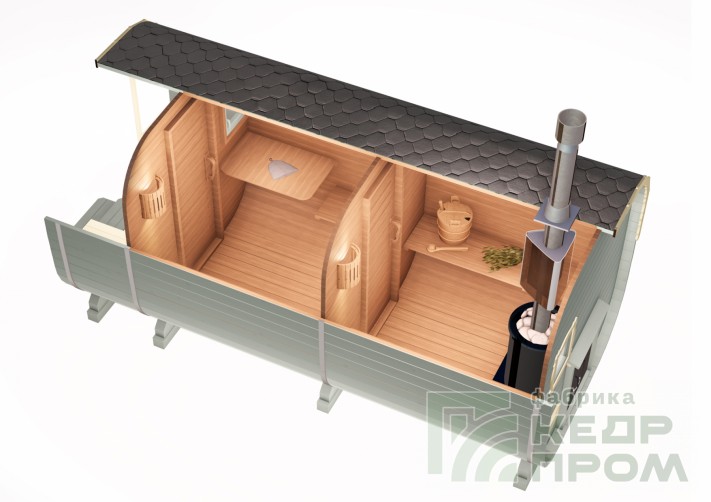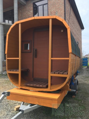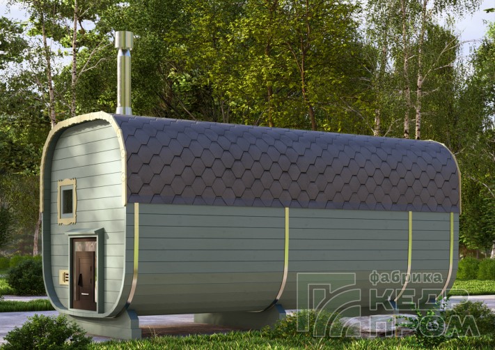 Баня-бочка из кедра квадратная 5м с верандой №287