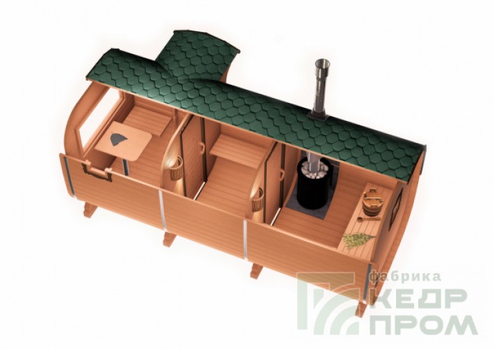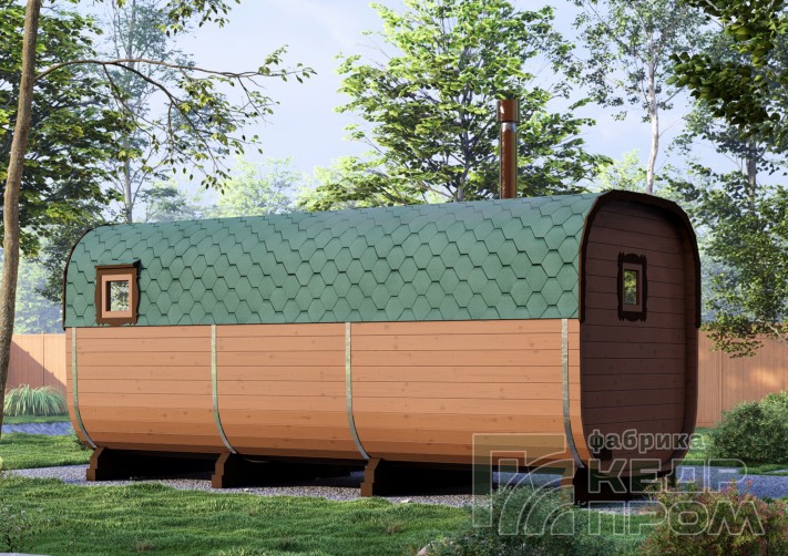 Баня-бочка из кедра квадратная 5,5м со входом сбоку №288