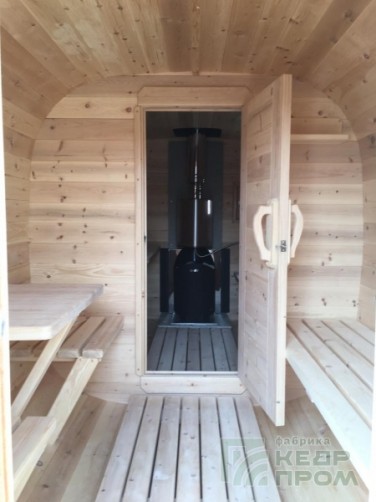 Баня-бочка из кедра квадратная 5,5м с козырьком №286