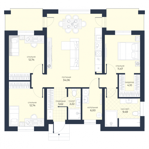 Дом, в котором всё продумано для вашего комфорта. Большой зал, столовая и кухня — именно здесь будут проходить и тихие семейные вечера, и весёлые праздники с гостями! Спальни для личного времени и отдыха!