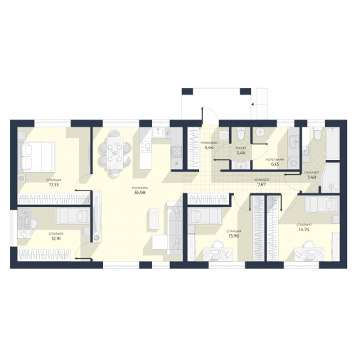 Дом, в котором всё продумано для вашего комфорта. Большой зал, столовая и кухня — именно здесь будут проходить и тихие семейные вечера, и весёлые праздники с гостями! Спальни для личного времени и отдыха!