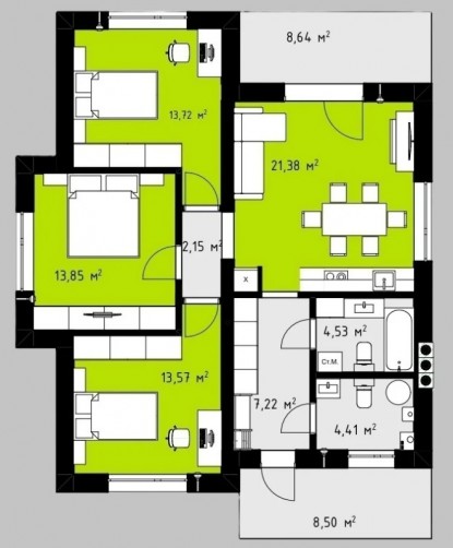Дом: 80,8 кв.м (полезная площадь, без террасы и крыльца):