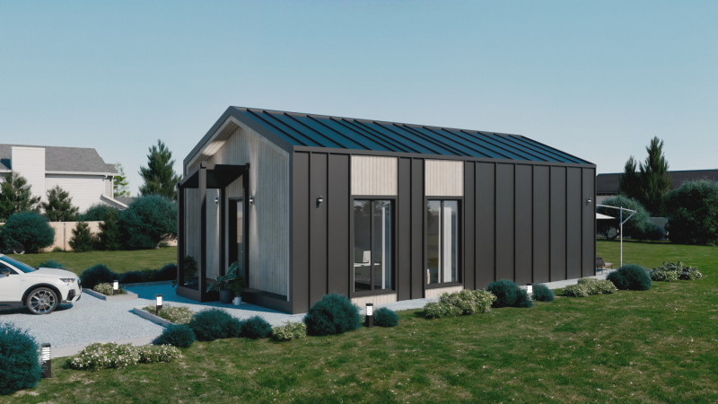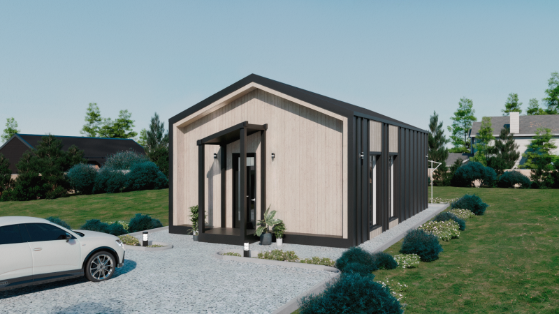 Деревянный одноэтажный дом с двухскатной крышей из 6 модулей. Высокие потолки- 3,5 м. Закрытая терраса- 20 м2. Панормное остекление. Прачечная. Внутренняя отделка white box. Дом идеален для комфортного круглогодичного проживания большой семьи.