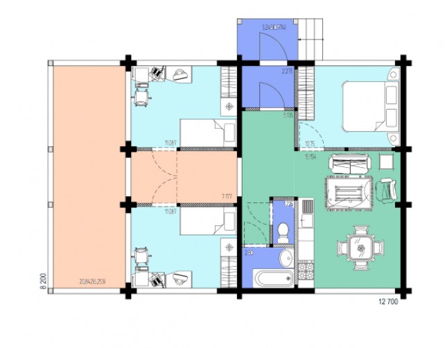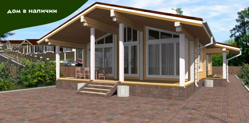 Дом полностью из клееного бруса. Стены обработаны декоративной и защитной пропиткой. Кроме базового домокомплекта, в проект включены электрика, отопление, водоотведение, окна и двери. Вам остается только расставить мебель в вашем новом экодоме.
