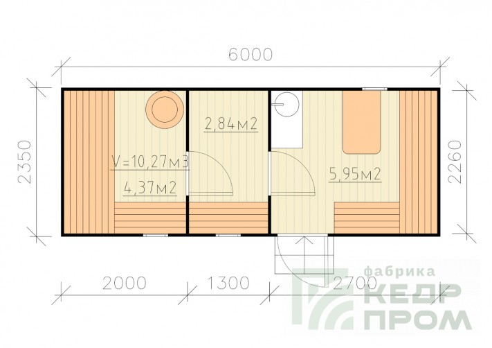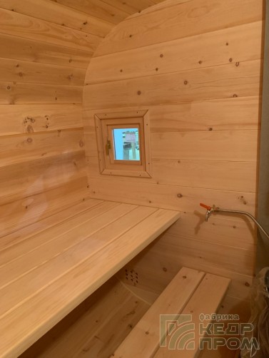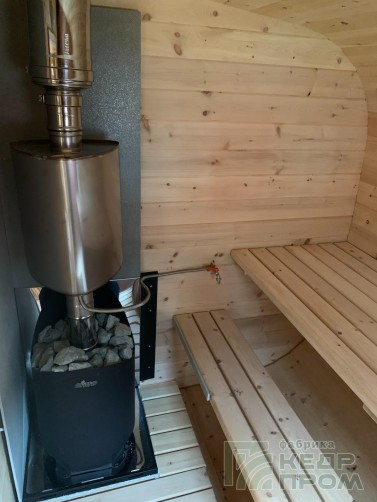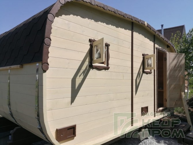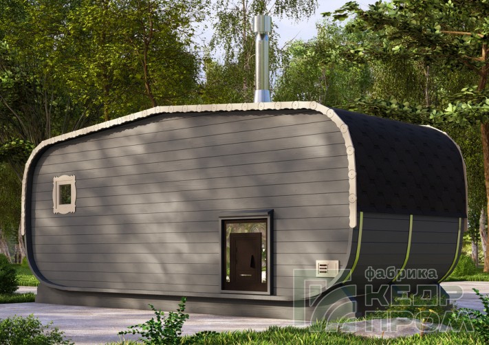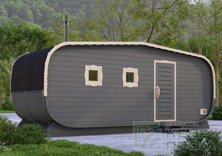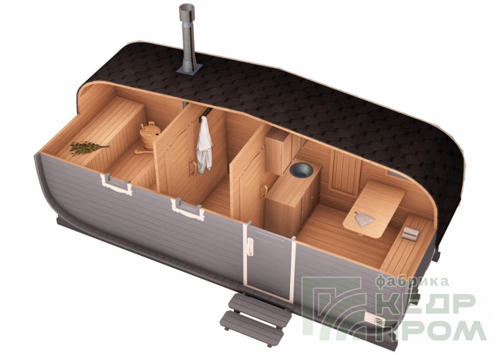 Баня-бочка из кедра квадро-овал с кухней и душем 6х2,35м №235