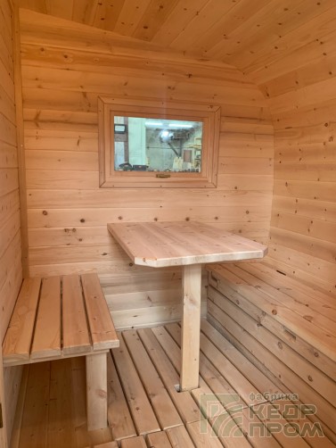 • Корпус бани из древесины кедра, собранный шиповым–пазовым способом