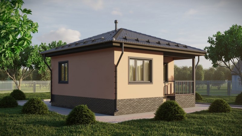 В проекте Милино дизайнерам удалось сделать очень гармоничный дизайн дома из СИП панелей. Шатровая крыша, аккуратное крыльцо с оградой, отделка под кирпич. Все это создает позитивное настроение и очень гармонирует с названием.