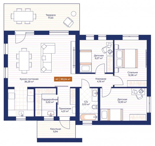 Наша флагманская планировка! Оптимальные площадь и функционал! Два варианта планировочного решения – с тремя спальнями или двумя, одна из которых становится мастер-спальней (с собственной ванной и гардеробной)