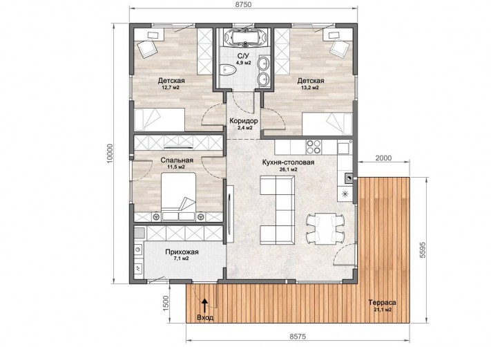 Терраса - это не просто часть вашего дома, это настоящий оазис спокойствия и уюта, где можно наслаждаться каждым моментом, выходя из своей просторной кухни-гостиной