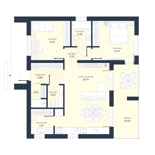 Дом, в котором всё продумано для вашего комфорта. Большой зал, столовая и кухня — именно здесь будут проходить и тихие семейные вечера, и весёлые праздники с гостями! Спальни для личного времени и отдыха!