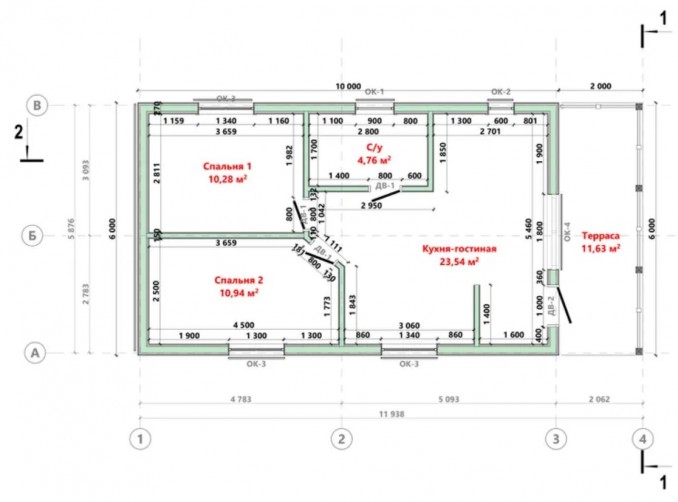 • Общая площадь 60 м2