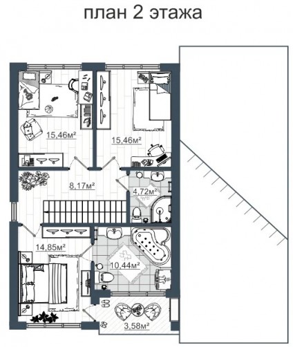 Проект «Тростен» представляет собой стильный дом, рациональный в строительстве и эксплуатации. Мансардная кровля создает не только максимально используемое пространство, но и обеспечивает максимальный объем для свежего воздуха, высокие потолки, а большие окна подарят много солнечного света, которые в совокупности создают атмосферу релакса. «Тростен» выглядит современно и привлекательно, с лаконичными элементами отделки фасадов в благородной, стильной цветовой гамме.